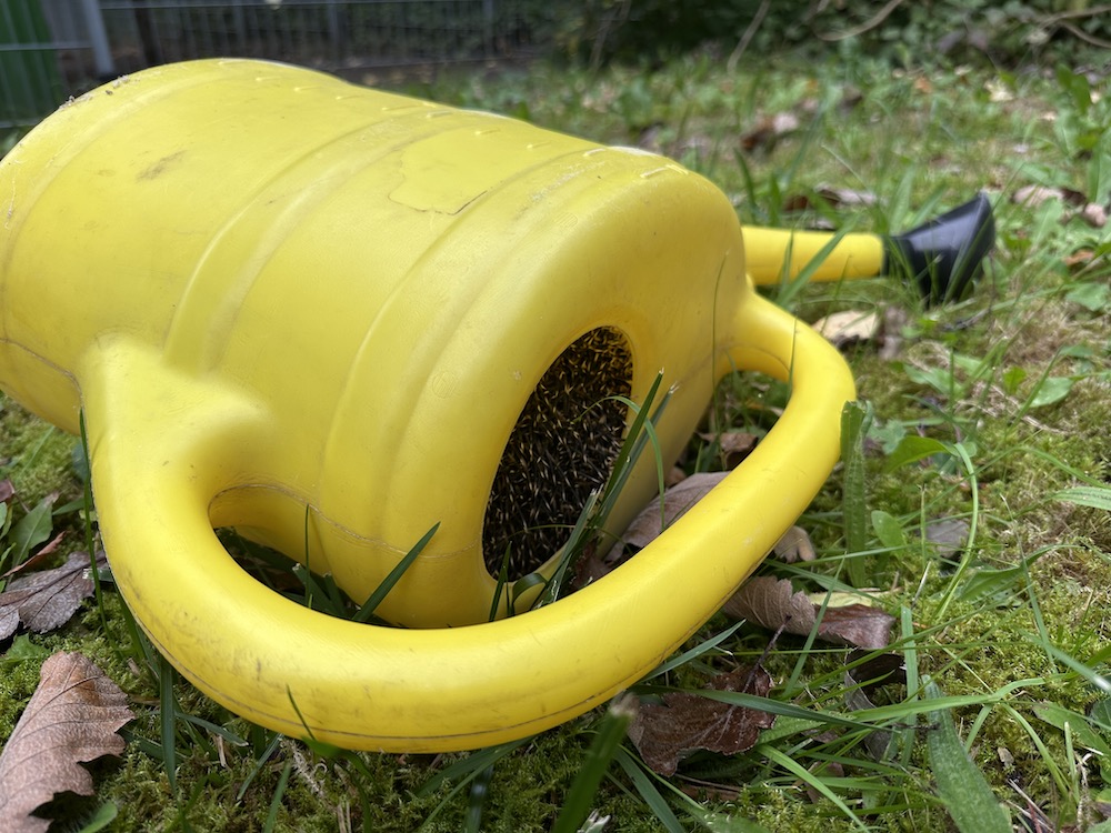 Auch darunter: mehrere Gießkannen in FHTC-Gelb. Eine dieser normalerweise leer abgestellten Gartenhelfer schien jedoch alles andere als leer zu sein. Ein IGEL hat sich tatsächlich deren Hohlraum als Höhle für seinen Winterschlaf ausgesucht. Ein Auslegen der Kanne samt IGEL am Rand der Sportanlage brachte dann das Tierchen dazu, sein temporäres Winterheim zu verlassen und in den benachbarten Komposthaufen überzusiedeln. Bliebe noch die Frage, was macht eigentlich eine Gießkanne in der FHTC-Garage? Auflösung bringt ein Blick zurück nach 2011. Damals half so eine Kanne tatsächlich auf dem nagelneuen Kunstrasen beim 4:1 Heimsieg gegen den Leipziger SC II im ersten Finalspiel um den Aufstieg in die 1. Mitteldeutsche Liga. Ob die Kanne jetzt den Herren in der neuen Saison hilft, bleibt abzuwarten. Zumindest der Igel muss sich nun nicht um die Eckenhereingabe einer Strafecke kümmern. Fotos: Corinna Höhne, Tobias Seifert