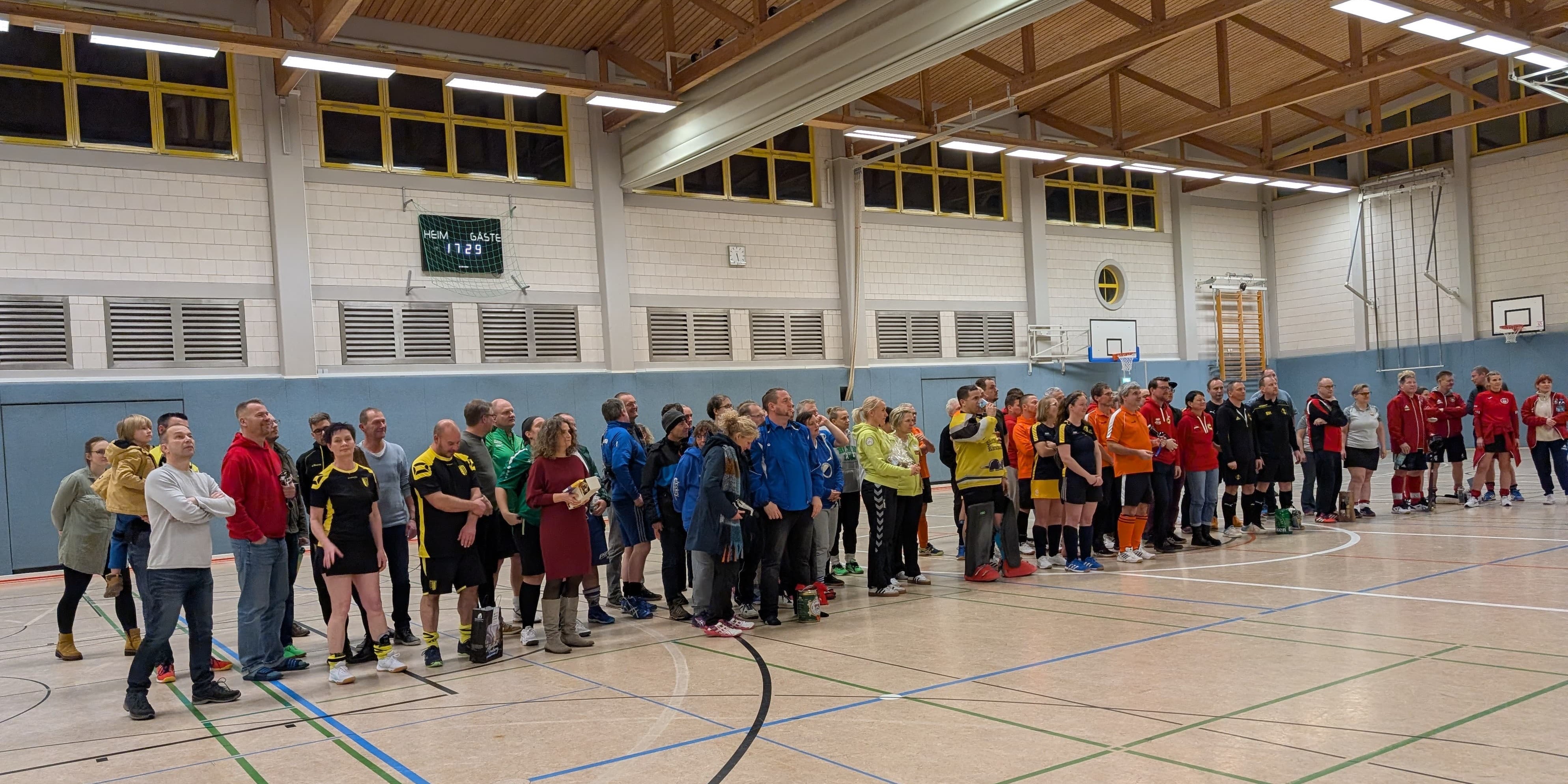 Mit von der Partie waren insgesamt 10 Mannschaften aus Meerane, Pillnitz, Jena, Brandenburg, Köthen, Dresden und Königs Wusterhausen. Der Gastgeber stellte zwei Mannschaften. Das Terrain war, wie so oft zu Jahresbeginn, hart umkämpft und viele Spiele endeten sehr knapp. Im Eröffnungsmatch gegen die zweite Garde des Gastgebers ging es dann auch gleich heiß her. Das die Knüppel am Ende mit 1:3 vom Platz geschickt wurden, war sicherlich nicht notwendig gewesen.Hier steckte uns noch die lange Weihnachtsruhe in den Knochen. Schwamm drüber. Im nächsten Spiel der Vorrundenphase ging es gegen die in weiß spielende Elternmannschaft aus Königs Wusterhausen. Der eigene Kasten blieb sauber aber man vergab eine Torchance nach der anderen. Das Tor schien als wäre es vernagelt. Nun wurden die Bandagen langsam härter und man sah sich im dritten Spiel dem Lokexpress aus Dresden gegenüber. Auch hier kam man lange nicht richtig in die Gänge. Ein glückliches Tor kurz vor Schluss bescherte den Eltern aus Freiberg die ersten drei Punkte des Tages. Im letzten Gruppenspiel gegen Köthen ging es um den Finaleinzug. Selbstbewusst legten die Knüppel zwar das erste Tor vor, ließen sich dann aber noch Zwei einschenken. Zu allem Übel fiel der letzte Treffer der Bergstädter nur minimal nach der Schlusssirene und zählte somit nicht. Das Spiel um Platz 5 wurde gegen „De Mamas & de Papas“ aus Meerane gespielt. Hier konnte die Knüppel dank der eigenartigen Auslegung der 7m Regel mit einem unentschieden vom Platz gehen. Man einigte sich ohne Penalty auf zwei fünfte Plätze mit den Damen und Herren in Rot. Das Finale bestritten am Ende die 1. Mannschaft der Gastgeber gegen die Havelfritzen aus Brandenburg. Nach Penalty blieb der Löwenpokal beim Gastgeber in Chemnitz. Glückwunsch.